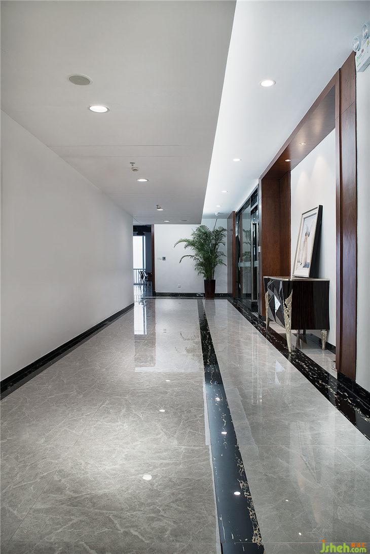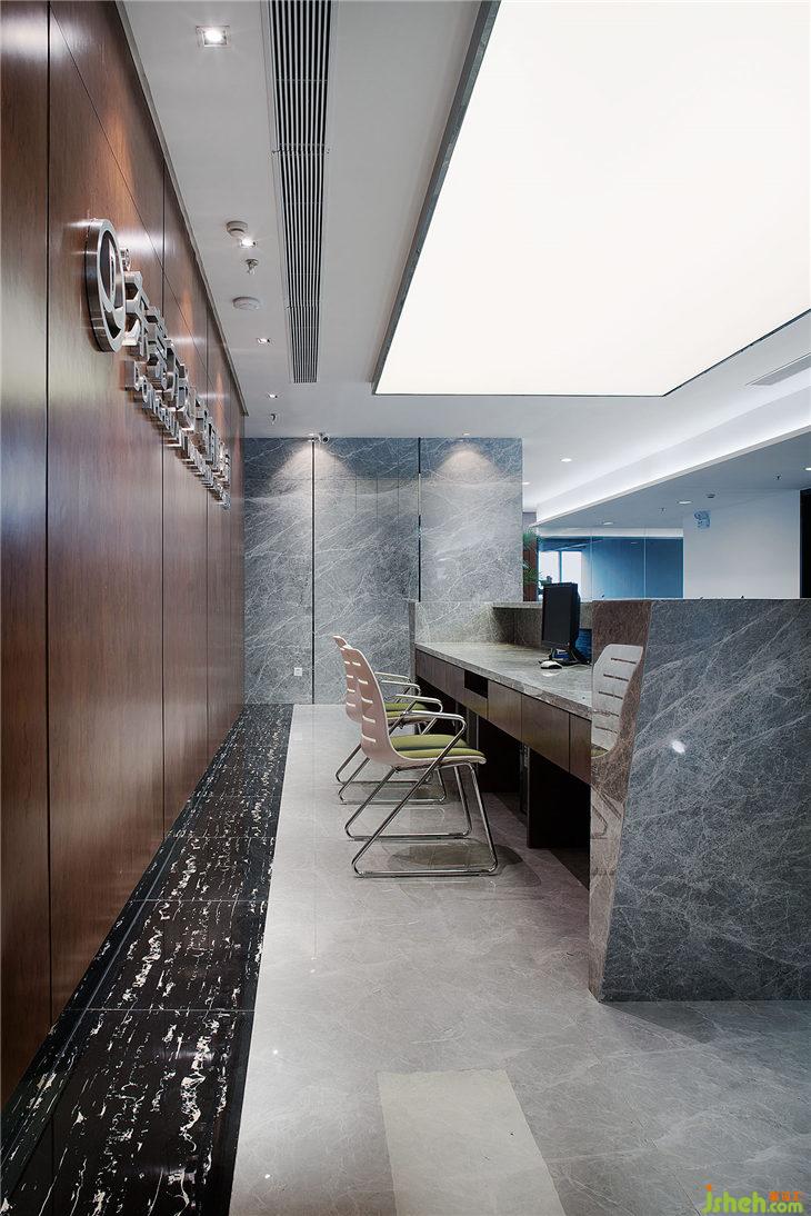 大廳比較注重大氣、開敞、嚴(yán)謹(jǐn)、莊重,所以我們運(yùn)用灰色大理石,深色木飾面以及白色軟膜、白色油漆。在形式上講究一個(gè)“一”字表現(xiàn),行業(yè)第一、中國(guó)第一、亞洲一?;ㄖ幸浴耙弧痹赜密浤ぜ盁艄庾隽艘粋€(gè)大大的“一”字。其二,大辦公室天花保留原頂, 享受更高的空間,保持內(nèi)部更多的空氣,綜合區(qū)辦公可容納50—60人同時(shí)辦公,開闊又明亮,同事間的互動(dòng)增強(qiáng),也提升了辦公效率,又不失嚴(yán)謹(jǐn)。過(guò)道是大辦公室的重頭戲,體現(xiàn)了出大企業(yè)的氣場(chǎng)。大會(huì)議室的天花與建筑外觀的小塊豎條造型形成呼應(yīng),用簡(jiǎn)單的線條勾畫出九個(gè)區(qū)域、形成“九五之尊”之意。