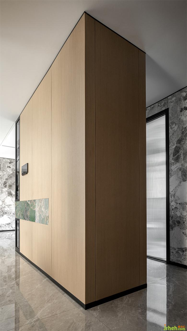 素雅的原木色是溝通空間動(dòng)線的重要媒介,室內(nèi)設(shè)計(jì)師在空間中得以大量應(yīng)用。矗立于大理石地面之上,形成了極為鮮明的視覺(jué)對(duì)撞,一種現(xiàn)代與自然的高度融合,以一種低調(diào)的姿態(tài)顯露無(wú)疑。