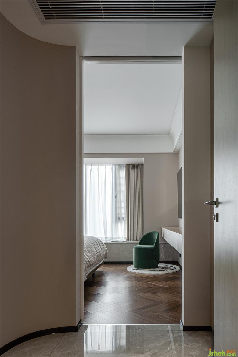沿著曼妙的弧線漸入佳境,集私密與舒適為一體的主臥于空間深處隱現(xiàn)。臥室擁有著怡然自得的空間使命,室內(nèi)設計師溫暖、治愈與浪漫的氣質(zhì)在這里集合,生活最舒適與最重要的場景都都存放于此。陽光輕語,微風和鳴,緩緩訴說著生活的真諦。