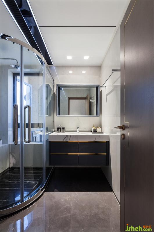 衛(wèi)生間黑白搭配的空間,大理石紋,大氣而又精致無比,洗手臺如同寶石一樣,吊頂采用大面蜂窩板加上長條形浴霸,家居設(shè)計讓整個空間更有藝術(shù)感,讓衛(wèi)生間添上幾分層次感,時尚大方有檔次。