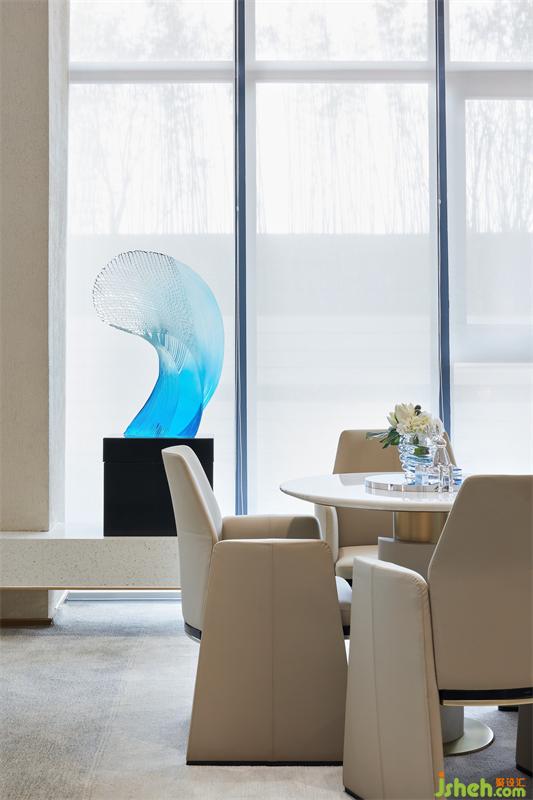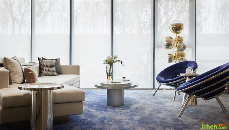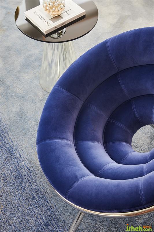 法葡設(shè)計(jì)師托尼·格里洛所設(shè)計(jì)的邀請(qǐng)沙發(fā),形態(tài)造型友好,舒適的觸感下覆蓋著堅(jiān)固的管狀結(jié)構(gòu),而適用于未來(lái)空間的宇宙藍(lán),貼合主題,表現(xiàn)出家具美學(xué)的藝術(shù)性。