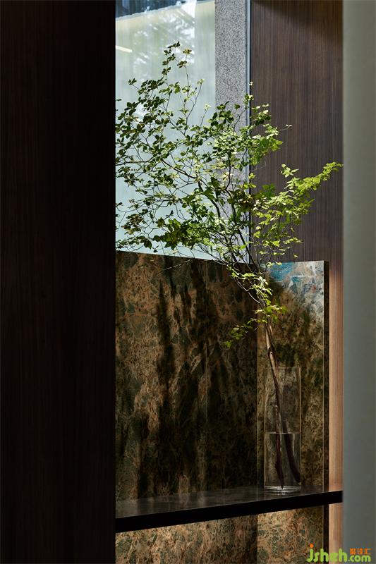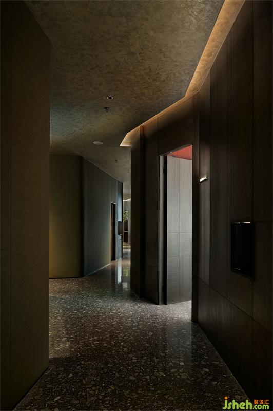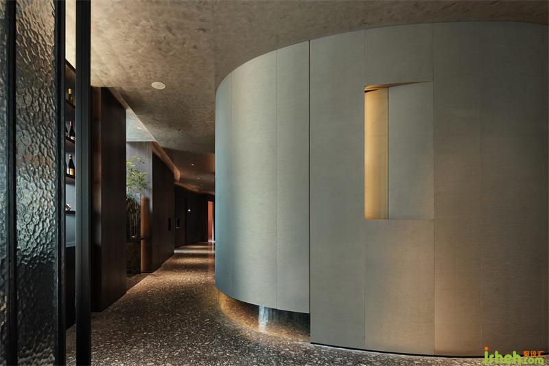 走廊呼應(yīng)著循環(huán)的流動的水,一脈曲線環(huán)繞著包間于盡頭交匯,餐廳設(shè)計蜿蜒曲折,循環(huán)不止。一眼難以看穿,只有人們行走于其中,山窮水盡疑無路之時,方才得見又一房間入口。