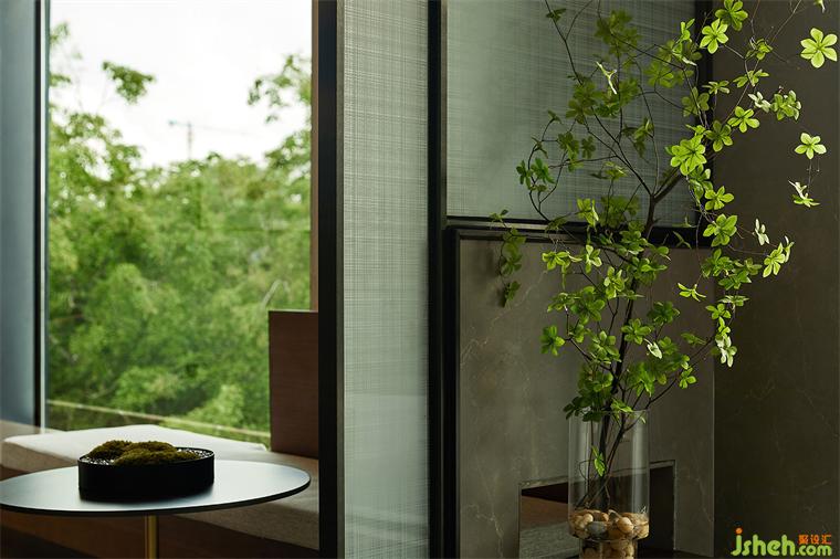 落地窗的位置設(shè)計了一個長長的休息凳,當(dāng)人慵懶地躺在這時,一眼望去的愜意感,三亞小酒店設(shè)計讓身體的每個細(xì)胞都變得松弛下來,沉醉于繁華都市的綠洲之中。