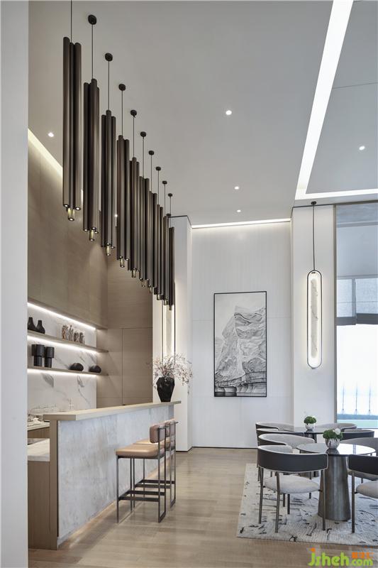 所有的藝術(shù)在本質(zhì)上都是詩(shī)意的,由建筑、空間到雕塑、家具,以至一面墻給予的平面視覺上的美感,都有如音符和諧的律動(dòng),由白色到灰色、黑色發(fā)生漸變。