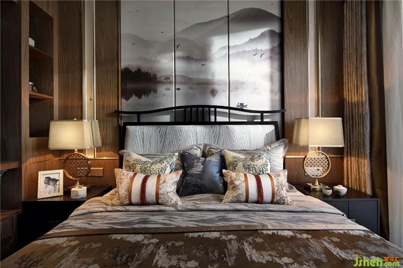 主臥在青山、碧湖、翠鳥(niǎo)的自然意象上延伸,以凝練的筆法抒寫(xiě)空間意蘊(yùn),訴說(shuō)著主人雅澹而雋秀的格調(diào)。