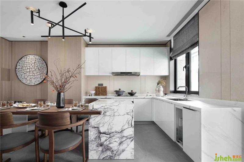 “取其神而忘其形”,餐廳空間提煉東方元素,從而打造出更適合現(xiàn)代人的中式風(fēng)格。它們在彰顯濃濃的古典韻味之余,又摒棄了繁復(fù)而多余的設(shè)計,加入一絲精致的輕奢元素進行調(diào)和,身處其中盡享優(yōu)雅。