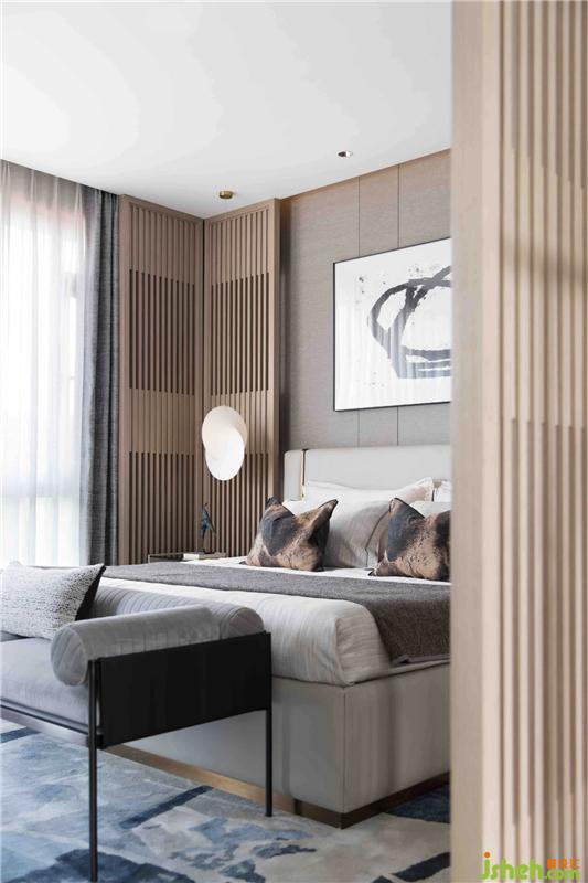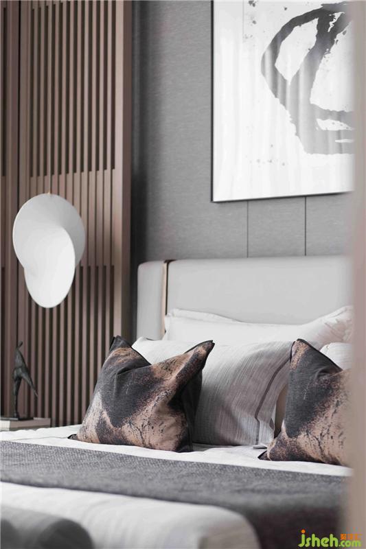主臥陳設(shè)簡凝妥當(dāng),色彩的糅合融于整體意境,以含蓄的現(xiàn)代方式詮釋儒雅東方格調(diào)。清雅的設(shè)計(jì)線條帶著人文畫般的韻味,展現(xiàn)居者的不凡格局。