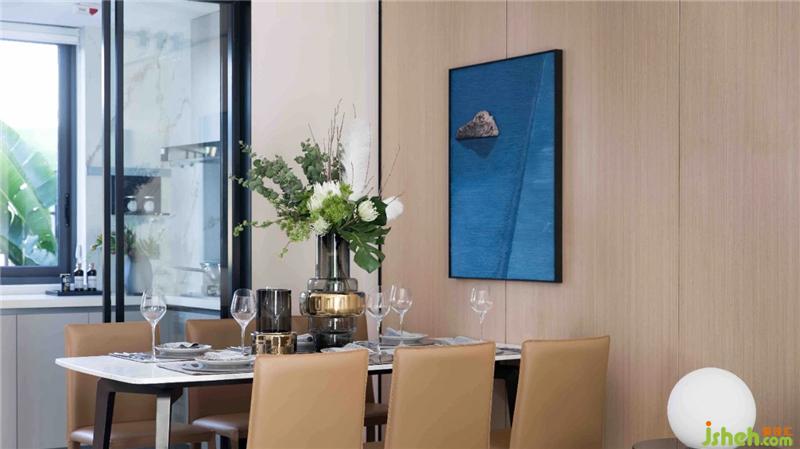 極簡的藝術(shù)掛件與燈飾,方圓之間線條的對(duì)比,在通透的環(huán)境下相互映射令空間擴(kuò)容,讓每處細(xì)節(jié)都透露雅致的藝術(shù)美感。