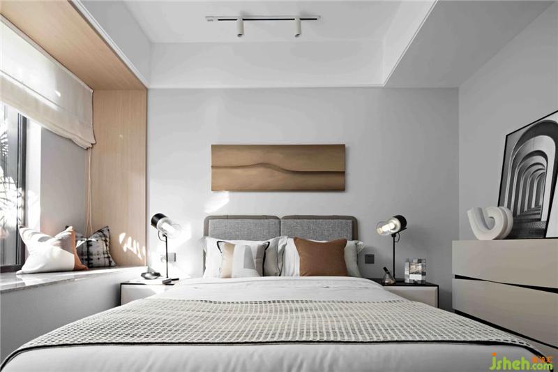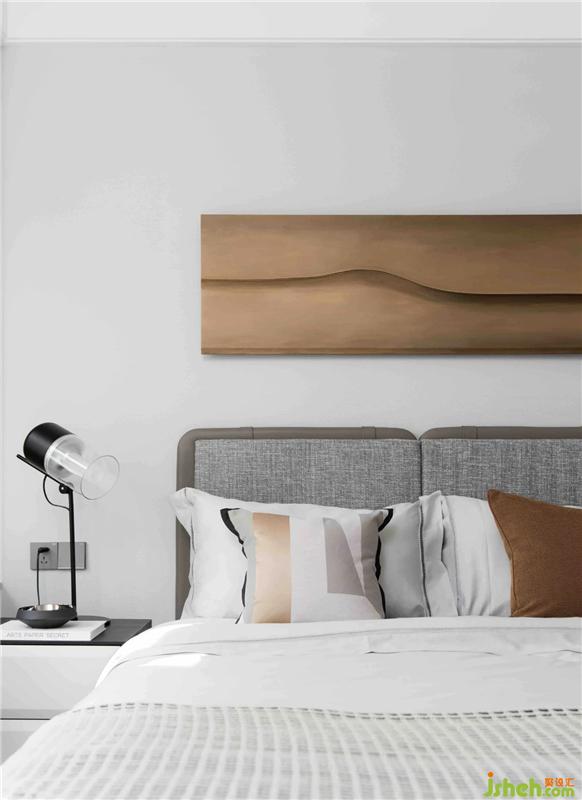 長(zhǎng)輩房的設(shè)計(jì)強(qiáng)調(diào)了以純粹的材質(zhì)體現(xiàn)品味,大面積的木色為整個(gè)空間帶來(lái)溫潤(rùn)的視覺(jué)體驗(yàn)。細(xì)膩親膚的床品漸層相疊,更為睡眠區(qū)營(yíng)造出寧?kù)o與溫暖。