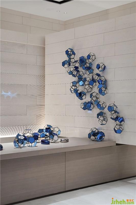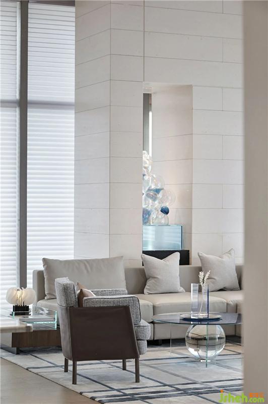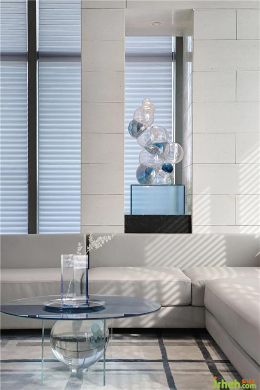 圓形的水晶茶幾呈現(xiàn)出深海般的暈染色澤,更立體的營(yíng)造了充滿藝術(shù)觀感的視覺(jué)空間。氣泡樣式的異形擺件跟隨著一天之中陽(yáng)光的變化反射出如寶石一般的剔透光景。