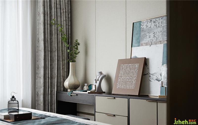 寬敞的主臥主要體現(xiàn)了生活的舒適性,整個(gè)空間在平靜沉穩(wěn)的灰色調(diào)的渲染之下,充滿了柔和的居家氣質(zhì),賦予了居住者獨(dú)一無(wú)二的居住體驗(yàn)。