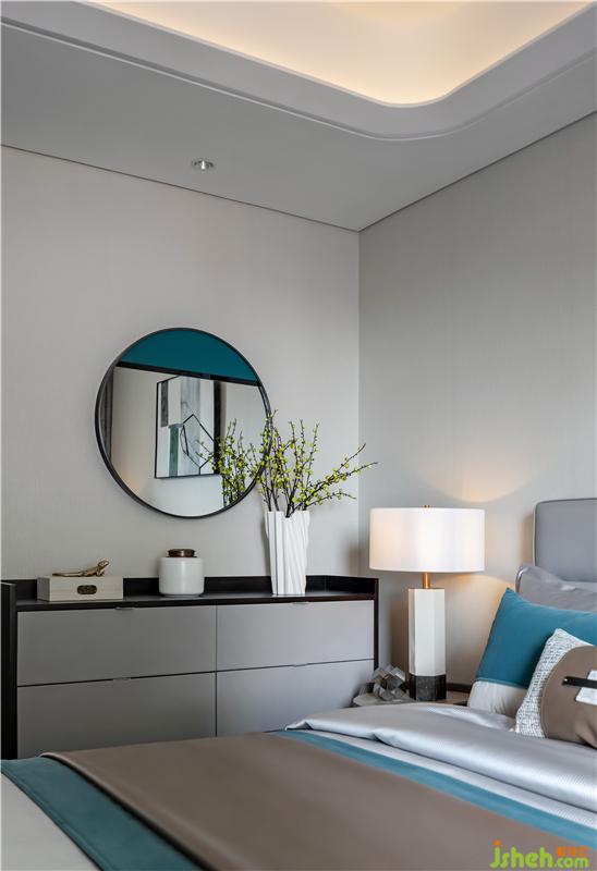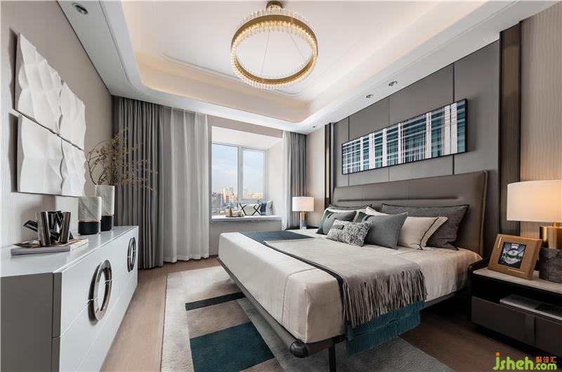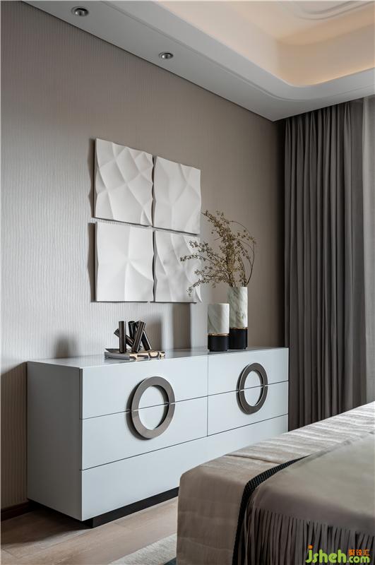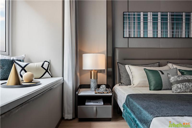 主臥的背景墻與床頭還有窗簾的選用上皆采用了含蓄而穩(wěn)重的灰色。低調(diào)內(nèi)斂,盡顯靜謐雅致的空間氣質(zhì)。