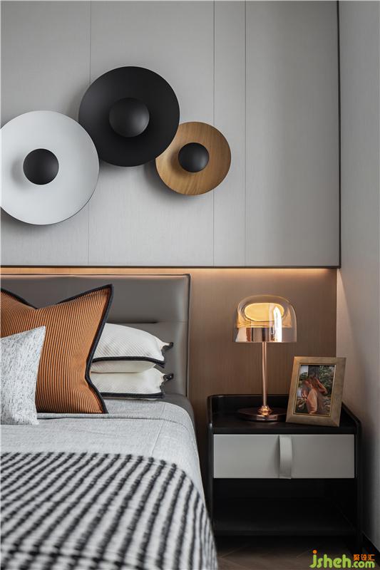 背景墻的裝置品不僅呈現(xiàn)出了別樣的層次感,又與整體空間色調(diào)相互呼應(yīng),營(yíng)造出了深遠(yuǎn)的視覺(jué)感官。