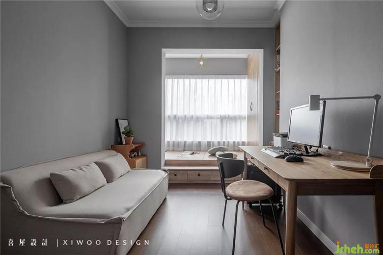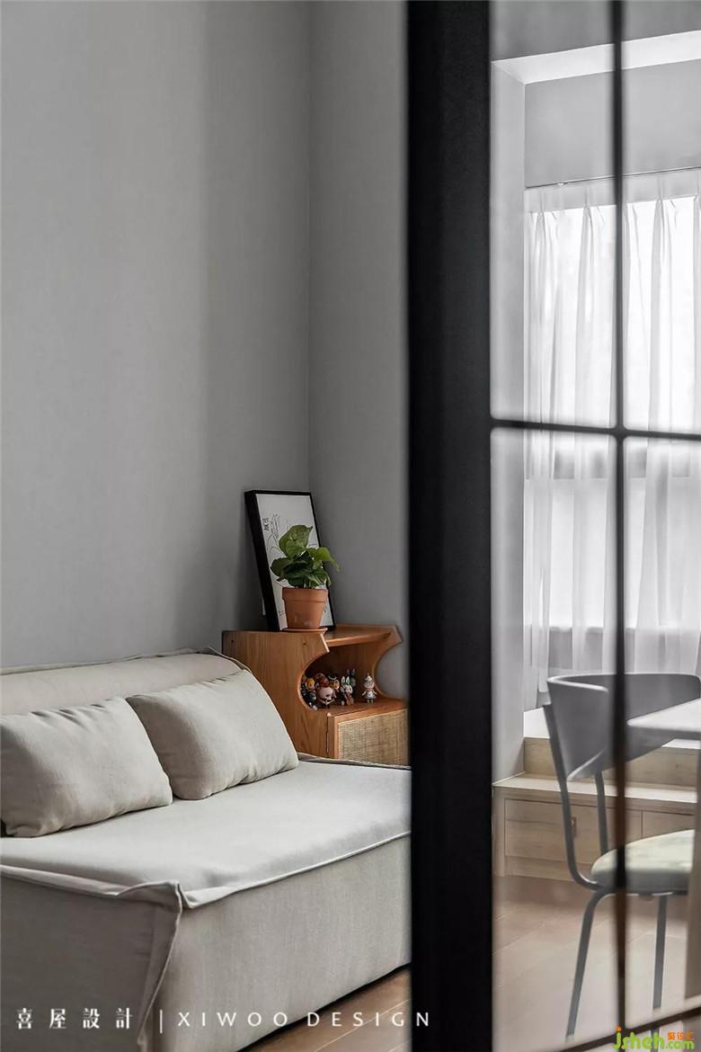 小而精的書(shū)房,與客廳陽(yáng)臺(tái)連通,似乎整個(gè)家都是流線型的。他工作,她就在旁邊看著你。