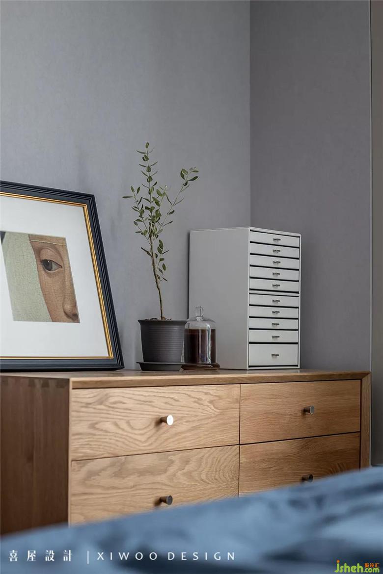 次臥設(shè)計(jì)在灰藍(lán)、雅棕等相近色相的組合搭配下,于別致中彰顯品位與質(zhì)感。其間點(diǎn)綴的掛畫(huà)、臺(tái)燈便是空間跳脫常規(guī)的所在,是向生活宣示個(gè)性的語(yǔ)言。