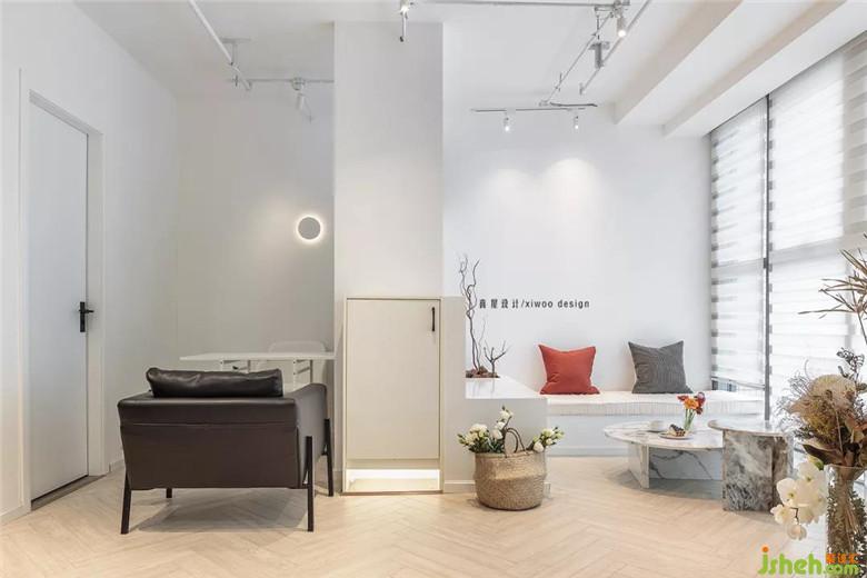 左邊是儲物間和為新顧客做皮膚測試的區(qū)域,右邊為顧客做完皮膚SPA完之后的休息區(qū)。可敘可憩,可伶可俐。