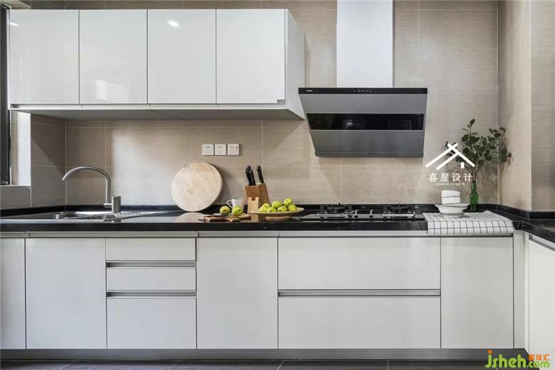 廚房以干凈整潔好收納為主,室內(nèi)設(shè)計師做了隱形拉手,使得整體觀感更加協(xié)調(diào)。