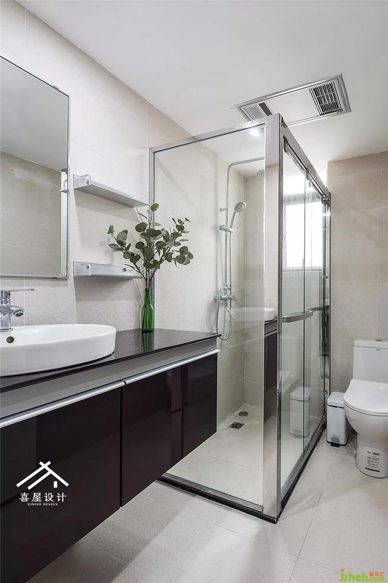 3.7平米的衛(wèi)生間,剛好能放下淋浴房和一個0.9米的洗面盆,恰到好處。