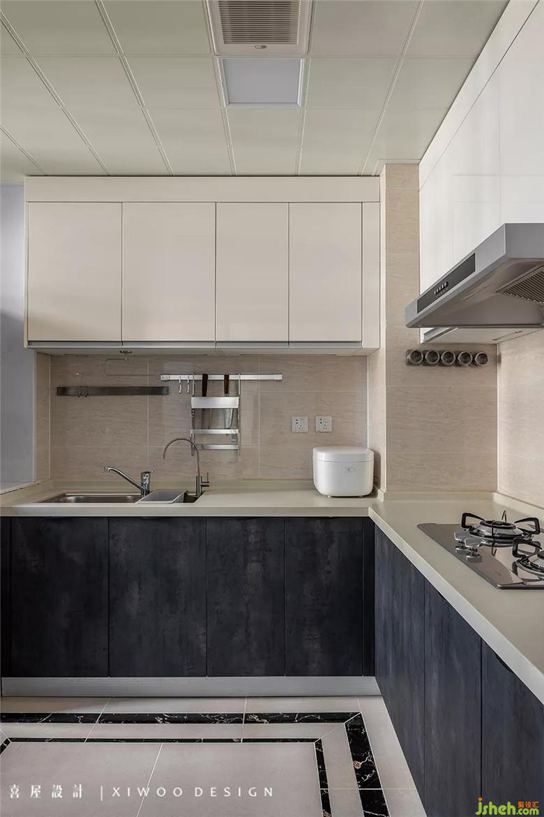 室內(nèi)設(shè)計師從操作的可行性和成本上考慮,換新后的水泥灰櫥柜門與保留的原廚房墻地磚和鋁扣板吊頂又重新糅整為一體。