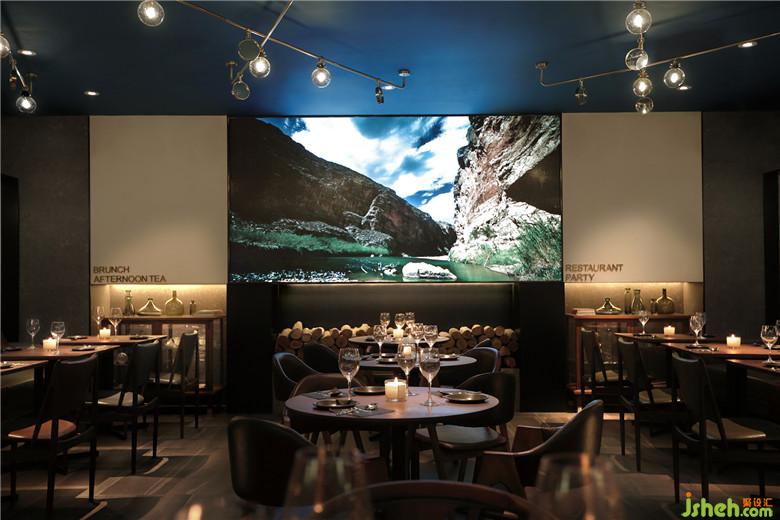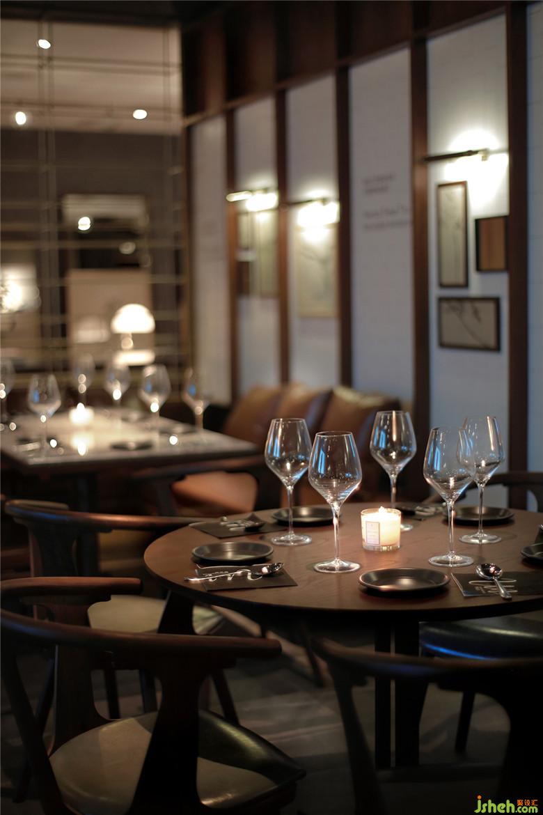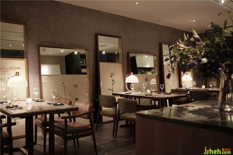 藍(lán)漆吊頂營造出意想不到的穩(wěn)重與舒適;利落的LOGO墻配上簡約的印象畫,將精致與色彩引至食客眼內(nèi);至于花朵、暖燭、高腳酒杯、侍者的微笑,那是最后的加分項(xiàng)。