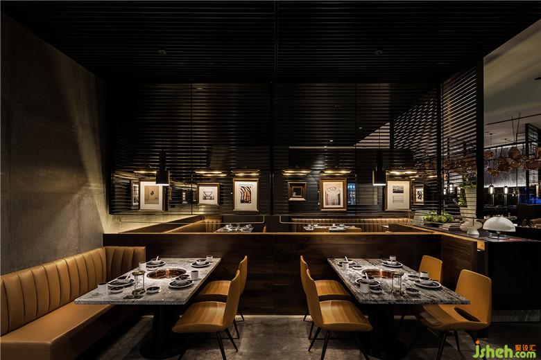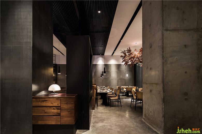 為了營造美食與藝術(shù)碰撞的氛圍,設(shè)計(jì)師引入藝術(shù)陳設(shè)的設(shè)計(jì)概念?;诤喖s設(shè)計(jì)的原則,設(shè)計(jì)師用樸素的材料和精致干練的造型賦予該項(xiàng)目全新的空間體驗(yàn)。
