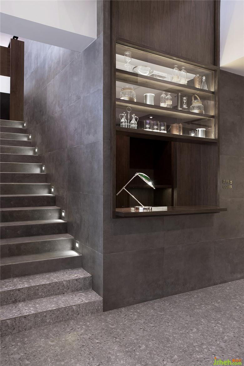 此建筑年代已久,室內(nèi)設(shè)計(jì)師為了保持原有的建筑感,特地大面積用具有時(shí)代感的水磨石地磚綴以溫潤(rùn)的胡桃木和現(xiàn)代時(shí)尚的深色天然大理石。同時(shí)在墻面采用大面積留白的手法搭配著少許的深色大理石,顯得整個(gè)空間放眼望去干凈、明亮、整潔。主打高品質(zhì)極簡(jiǎn)風(fēng)格,迎合現(xiàn)代年輕消費(fèi)群體。