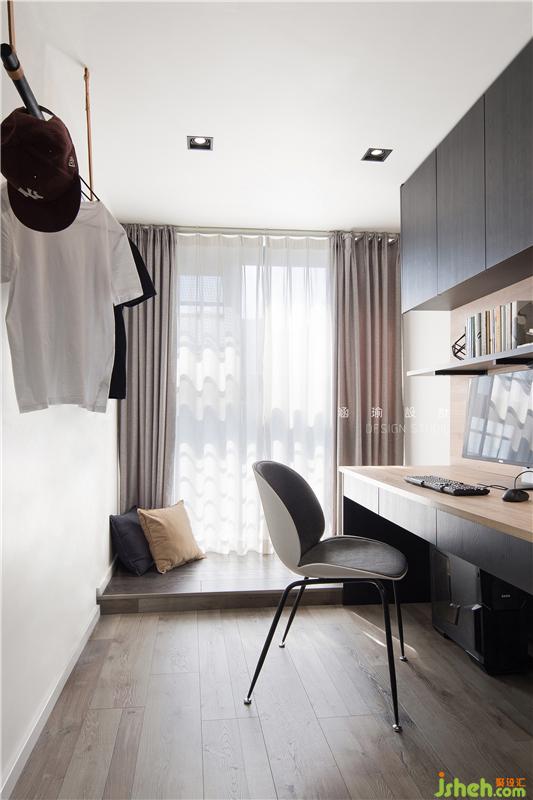 臥室隔壁的多功能房間,同樣用到了玻璃推拉門,采光通透。作為書房工作室,也可作為洗烘衣服的空間,掛燙衣服等都是可以這個空間進行,也可是坐在地臺上感受溫暖的陽光與欣賞窗外的美景的休閑區(qū),一室多用,實現(xiàn)功能最大化。