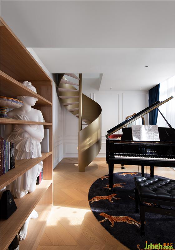 木飾墻面上精細(xì)優(yōu)雅的金色元素?zé)麸棧[秘感中包含輕奢,精致細(xì)膩的質(zhì)感開啟對(duì)美的感知。