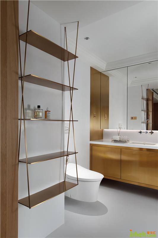 金屬與石材質(zhì)感的變化性,構(gòu)建出主衛(wèi)的層次感,雙臺(tái)盆的實(shí)用性更強(qiáng)。紋路大氣的大理石淋浴間,愈顯精致的貴族風(fēng)范。
