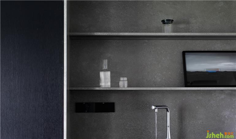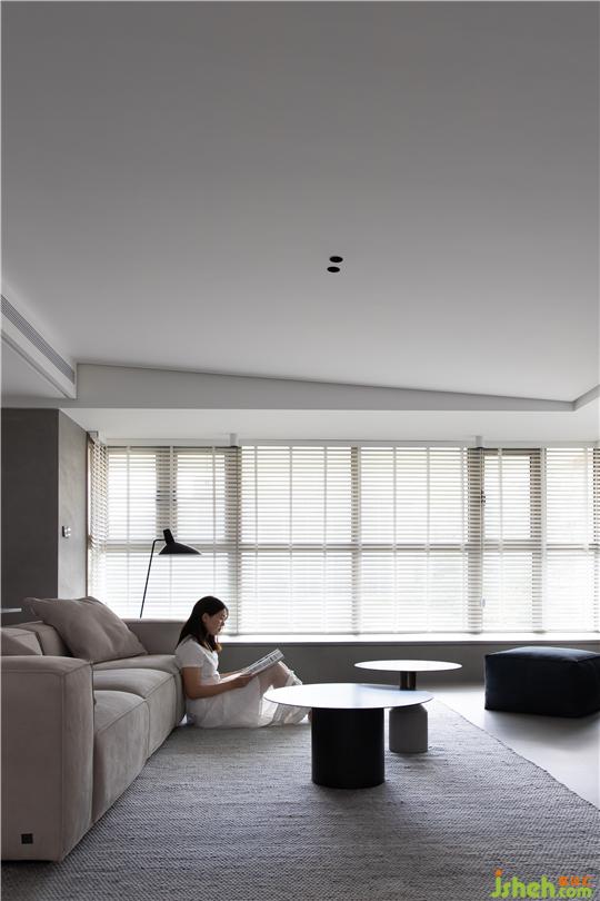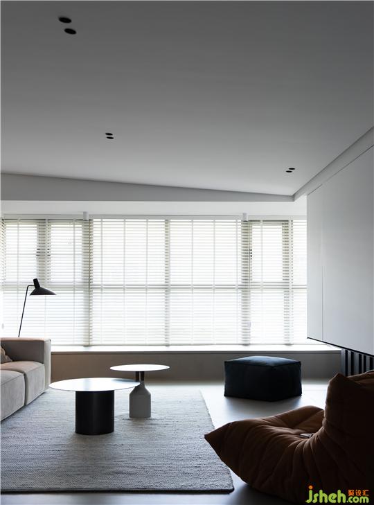 ① 將客廳與玄關(guān)區(qū)隔墻打通,打開后的客餐廳區(qū)域擁有良好的互動關(guān)系,暖灰色微水泥地面讓空間視覺表達統(tǒng)一有序。