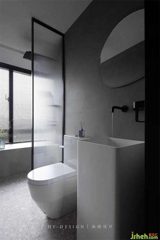 黑白,曲直,光影,都是空間的獨特印跡,用紋理和質(zhì)感烘托出衛(wèi)生間的高級感;分離式設(shè)計,表現(xiàn)對美學(xué)的堅持與生活的考究。
