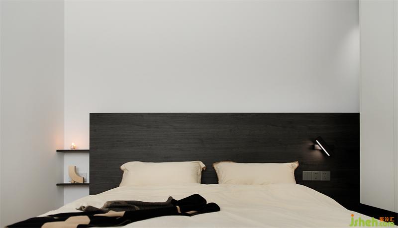 主臥在舒適感與精致感之間尋得了平衡,百葉簾將陽光構(gòu)建出秩序性,內(nèi)斂且沉穩(wěn)的色彩擁有安定人心的力量,所有的情緒都在這里得到舒緩。