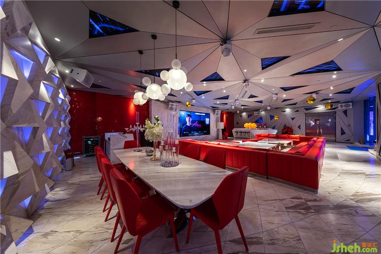 超大豪華包間,華麗得超出想象,一半是火焰的紅,一半是海水的藍(lán)。巨大的包間內(nèi),仿佛飛船的指揮艙,超長紅色轉(zhuǎn)角沙發(fā),環(huán)繞出不同的社交組合。內(nèi)置泳池在安靜時也暗潮涌動,LED屏和燈光矩陣加持著整個空間氣場。