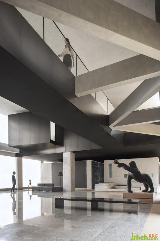 空間的天花板并無任何一盞燈,取消晝日照明,而是利用地面光束的漫反射來實現(xiàn)照明?;蛟S只有在夜幕降臨時,才會被人訝異這設計,可以如此感受到一天的自然氣息變化。
