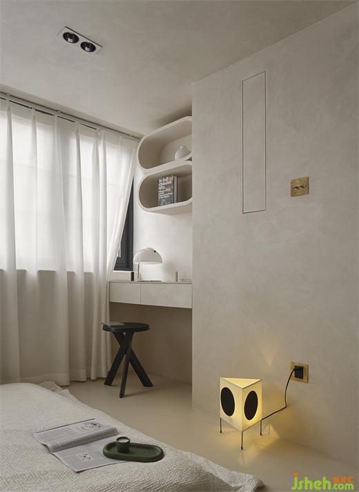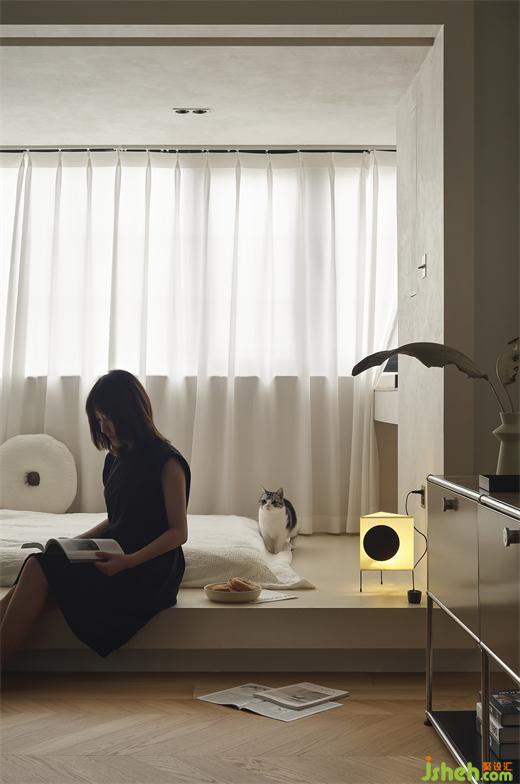 作為家里最大的窗,設(shè)計(jì)師對(duì)地面做了抬高處理,并用微水泥材質(zhì)進(jìn)行墻面、裝修公司地面的裝飾,柔和的材質(zhì)和光澤,可以讓她的身心很快松弛下來。