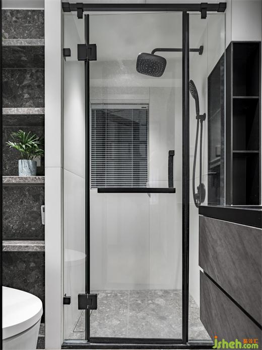 干濕分離的衛(wèi)生間提升了居住生活的舒適度,淋浴區(qū)和洗手臺(tái)置入一塊可雙面使用的不銹鋼壁龕,簡(jiǎn)潔的同時(shí)也兼顧了實(shí)用性。