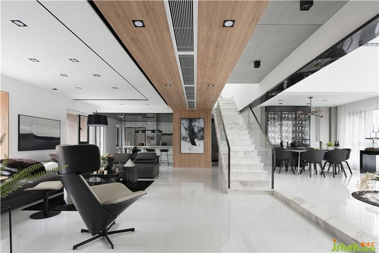 男主人非常熱情、爽朗,因此打造一樓的空間室內(nèi)設(shè)計(jì)師設(shè)計(jì)風(fēng)格也完全開(kāi)放式,餐廳和客廳之間完全沒(méi)有阻擋,可以滿足任何聚友會(huì)客的形式。