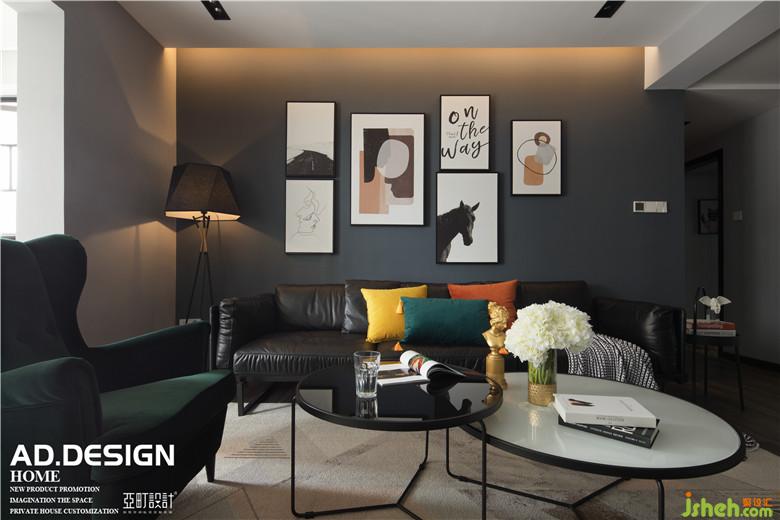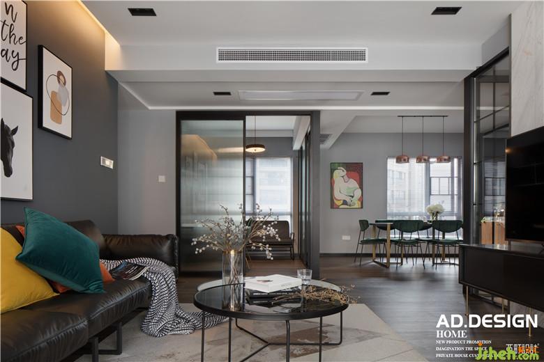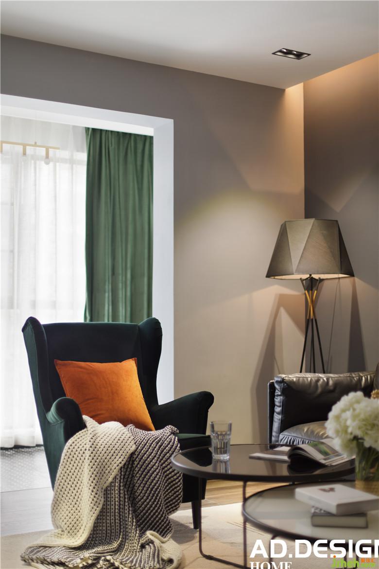 客廳黑灰色皮質(zhì)沙發(fā)結(jié)合墨綠色斯家蒙的單椅,與景觀陽(yáng)臺(tái)墨綠色窗簾及黑色馬賽克相呼應(yīng)。電視背景墻室內(nèi)設(shè)計(jì)師則用兩側(cè)透明的鐵藝玻璃隔斷,以及整面爵士白大理石構(gòu)成。這感覺恰如《重慶森林》的畫面,暗淡的光線,又被高光給予玻璃杯的質(zhì)感,溫熙慵懶。