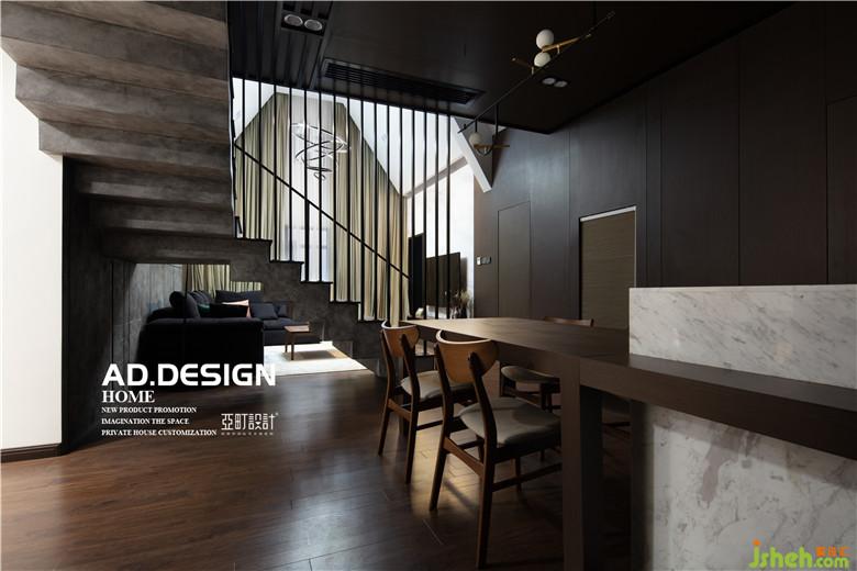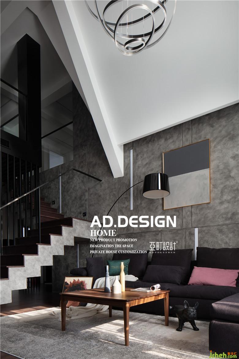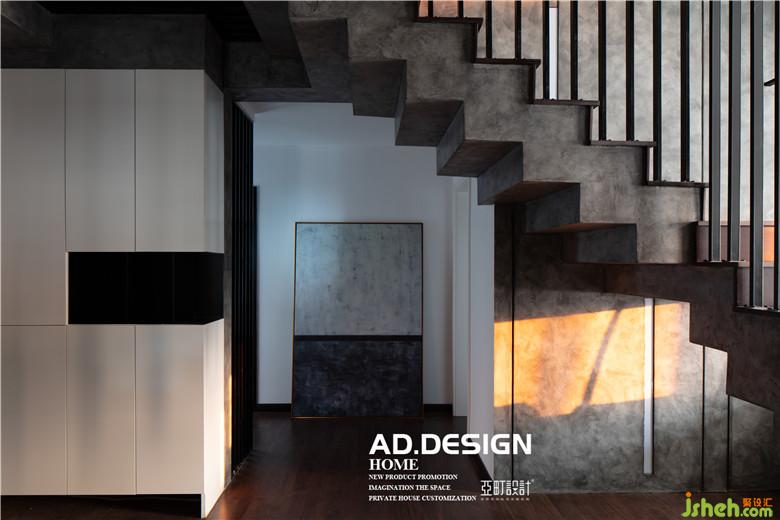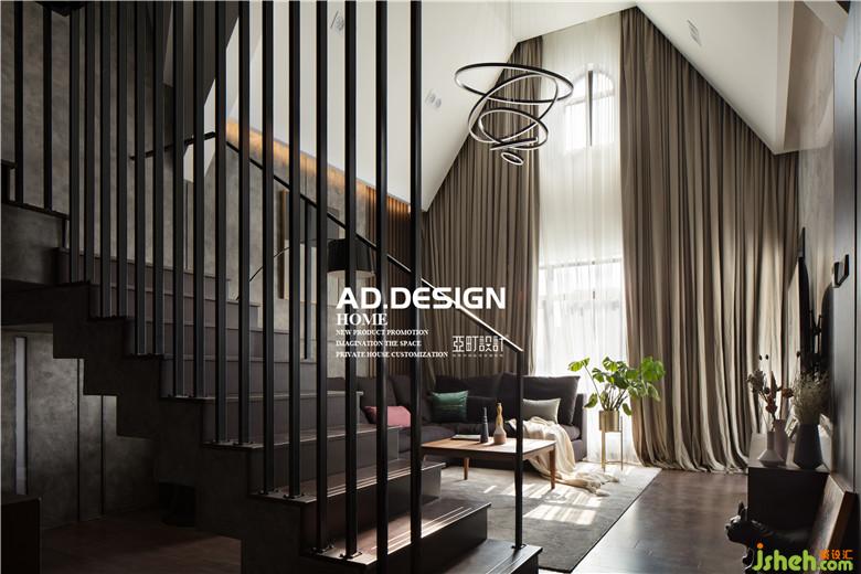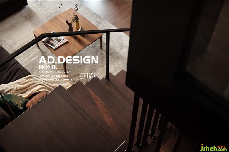 這是一個頂層復式,一樓的房高過高而二樓的房高又過矮,上樓的踏步比正常要多上幾個,上樓還容易撞到頭,因而樓梯的設計是室內設計師一個很大的難點。
