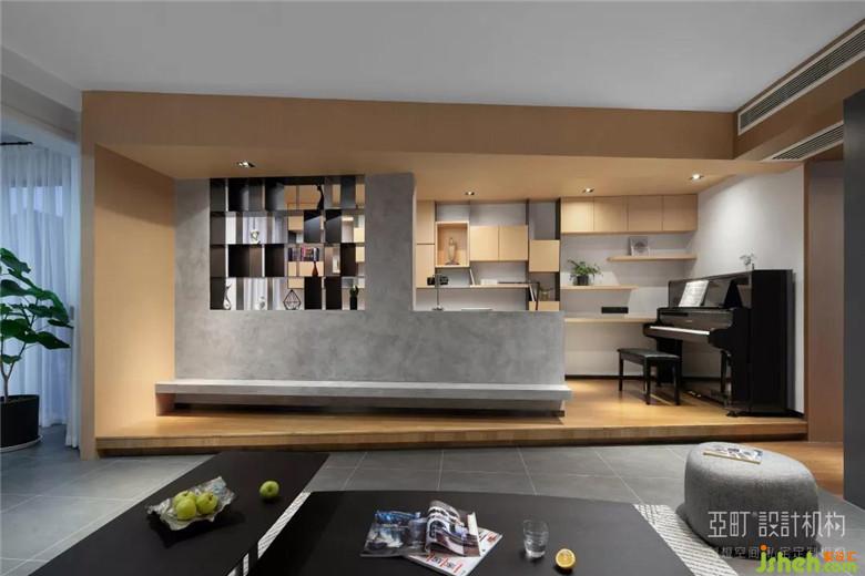 在設(shè)計(jì)上,特意將書(shū)吧的空間界面延伸至客廳,