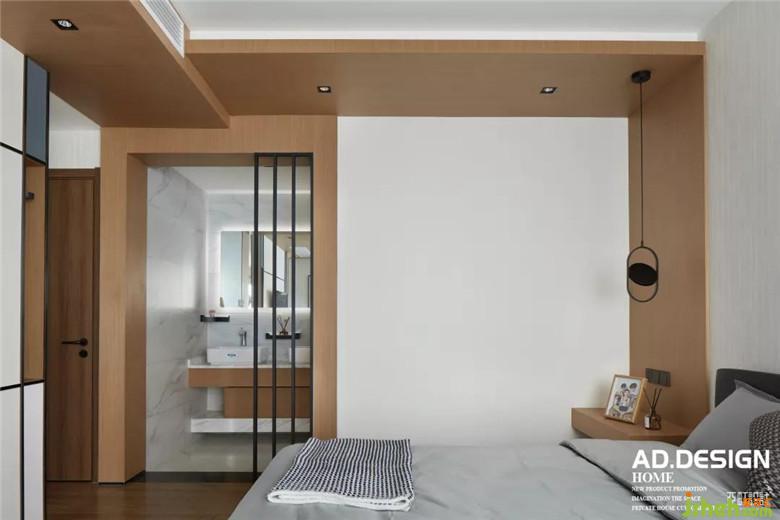 幾何結(jié)構(gòu)頂面、木飾面墻面、紋理感壁紙、是這個空間的面貌,裝修公司配上設(shè)計感的壁燈和色塊拼接畫裝點了這一室的溫柔時,多了一份色彩的跳躍愉悅。