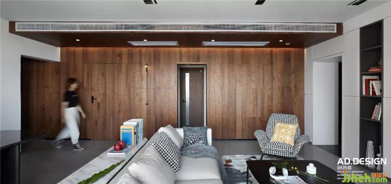 入戶(hù)在原始結(jié)構(gòu)上對(duì)原墻體做了一些調(diào)整,將鞋柜內(nèi)嵌進(jìn)墻體,從入戶(hù)連結(jié)過(guò)道設(shè)計(jì)一整面的木質(zhì)背景墻面,裝修公司將臥室和廚房的門(mén)也融合在其中,頂面與墻面的木質(zhì)組合構(gòu)建出整個(gè)空間的視覺(jué)中心點(diǎn),定下全房的主體格調(diào),在過(guò)道盡頭一整面柜體式的電視背景墻面,既創(chuàng)造一個(gè)簡(jiǎn)約大方的視覺(jué)感官,也具備強(qiáng)大的家居儲(chǔ)納功能。