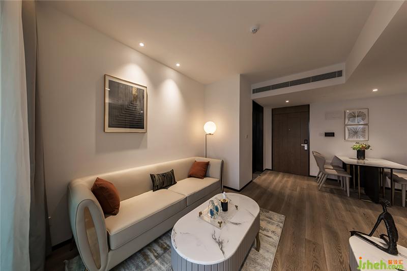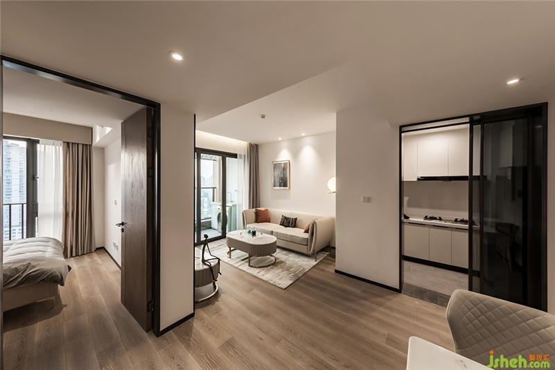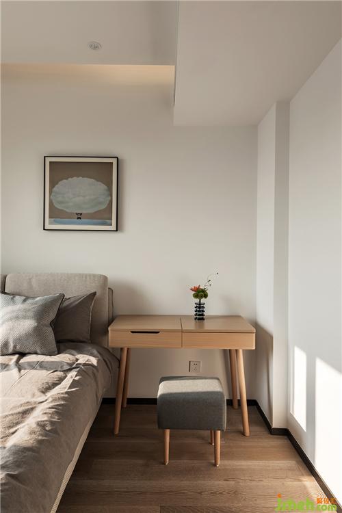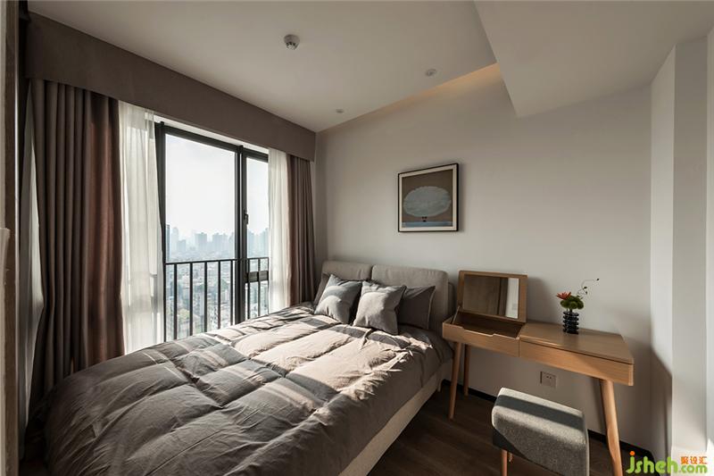 沿用公共區(qū)的簡介,臥室的軟裝部分,用深咖及灰調(diào)子營造出溫馨的環(huán)境深圳樣板房設(shè)計(jì)。