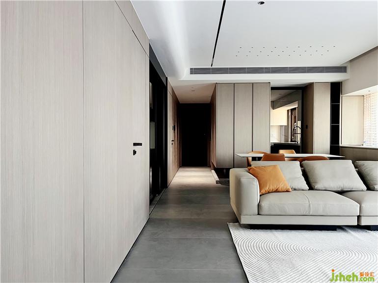 厚墻打薄增加空間的使用面積,書房位置打開,使客餐廳空間更大,深圳家裝設(shè)計(jì)通風(fēng)采光效果更佳,滿足業(yè)主需求在簡約風(fēng)中,墻面沒有過多的修飾,大面積木飾面使整個(gè)空間更佳簡潔,塊面明確。