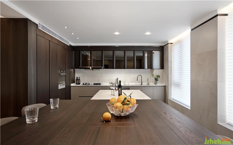 設(shè)計(jì)師打破常規(guī),在設(shè)計(jì)中把客廳、廚房、餐廳原有的分散空間進(jìn)行了巧妙的整合,室內(nèi)設(shè)計(jì)師化零為整,使得空間尺度得以放大,視野開(kāi)闊通透,低調(diào)質(zhì)感的家具點(diǎn)綴其間,克制典雅。原戶(hù)型客廳的開(kāi)間比較大有7米寬,而餐廳跟廚房相對(duì)來(lái)說(shuō)就顯得比較狹小,因屋主夫婦待在廚房的時(shí)間會(huì)比較多些,經(jīng)過(guò)溝通后,我們把原房間4的部分空間歸納為廚房,室內(nèi)設(shè)計(jì)師把廚房的開(kāi)間增加到跟客廳一樣大,擴(kuò)大廚房的同時(shí)我們?cè)黾恿艘粋€(gè)中島臺(tái),這個(gè)中島臺(tái)即可以當(dāng)作廚房操作臺(tái)來(lái)用,又可以當(dāng)作一個(gè)小吧臺(tái)。室內(nèi)設(shè)計(jì)師又為整個(gè)空間添加了一個(gè)亮點(diǎn)。