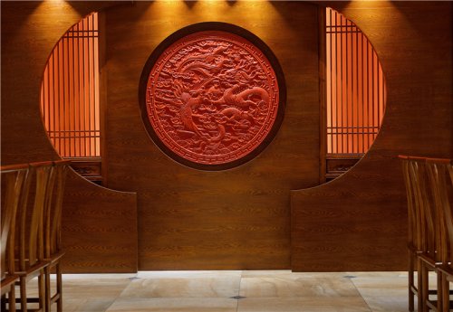 設(shè)計(jì)師用材質(zhì)和顏色分割了每一個(gè)用餐的區(qū)域,綠林古景,紅瓦青磚,斷壁殘墻,不同的材質(zhì)造就出了同樣的感覺(jué),朱紅,黛藍(lán),宮殿綠裝飾的包廂搭配古典意境到軟裝,從門(mén)口隔窗看去若隱若現(xiàn),露而不盡,優(yōu)雅含蓄,透光幽靜,真可謂一步一景,移步換景;