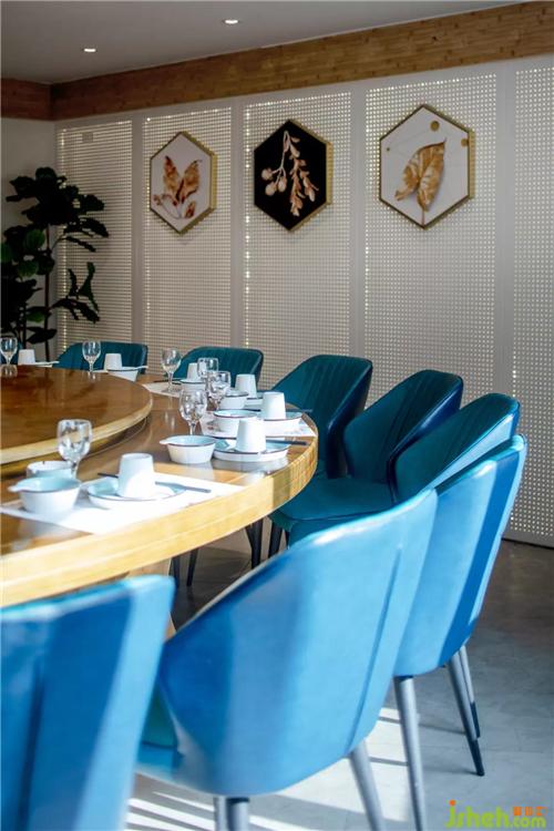 餐飲,僅僅只是人們?nèi)粘I钪械囊环N“儀式”,而好的商業(yè)空間設(shè)計(jì)師要做的,就是讓這種“儀式”的發(fā)生地與消費(fèi)者的內(nèi)在訴求產(chǎn)生關(guān)系。原木色的卡座區(qū)構(gòu)建的內(nèi)層空間,給予了相對(duì)私密的個(gè)人化時(shí)光,綠植的加入通透了層高帶來的局限,并且加入了中國(guó)古典園林和寫意花鳥的元素,讓就餐體驗(yàn)變得清麗、舒適。“食物與自然”并置是設(shè)計(jì)師在空間中構(gòu)建的進(jìn)食體驗(yàn),上下貫通的原木色樓梯隔離開了中央廚房里的忙碌和嘈雜,挑高的處理加強(qiáng)了空間的通透性,綠色得以在木色中肆意生長(zhǎng)。用餐的每一個(gè)細(xì)節(jié)都值得全心全意對(duì)待,從餐具的款式搭配,一桌一椅擺放的位置,到室內(nèi)室外的光影變化,都要經(jīng)過悉心考慮,每位食客都能從細(xì)節(jié)處發(fā)現(xiàn)驚喜,收獲最愉悅的心情以及最貼心的用餐體驗(yàn)。設(shè)計(jì)師有意的采用簡(jiǎn)單和深邃的色調(diào)架構(gòu)整個(gè)空間,弱化原有的局限性。開方式廚房上部裝飾中國(guó)畫寫意長(zhǎng)卷,讓人們把遠(yuǎn)方的山水和眼前的煙火融為一處,同時(shí)還以U型池的連貫作為與功能兼?zhèn)涞脑煨?,使靜態(tài)空間充滿動(dòng)態(tài)的流動(dòng)感,同時(shí)帶出顧客在這個(gè)空間流動(dòng)意識(shí)。餐飲,作為我們生活中最重要也最日常的消費(fèi)與生活方式,餐飲空間的設(shè)計(jì)不再是單純的構(gòu)建簡(jiǎn)單的餐飲形式和就餐環(huán)境這么簡(jiǎn)單,隨著新穎的飲食文化熱潮和不斷更新的就餐方式以及人們對(duì)就餐環(huán)境品味的追求,餐飲空間的設(shè)計(jì)也進(jìn)行創(chuàng)新與發(fā)展。餐廳設(shè)計(jì)