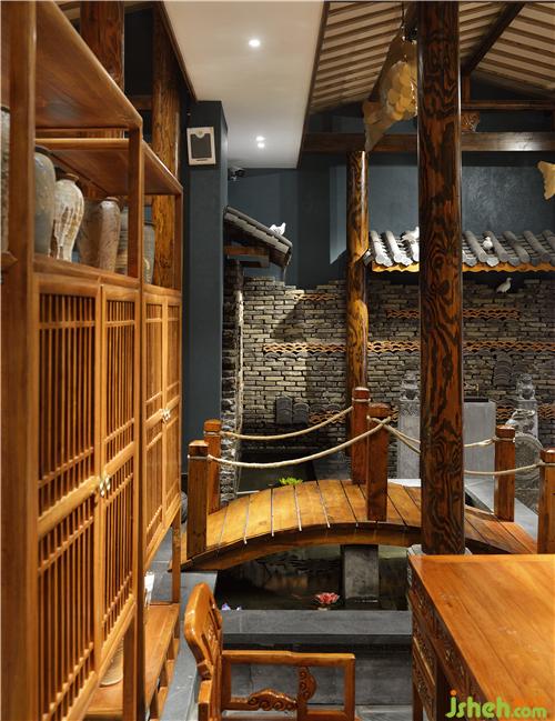 中國傳統(tǒng)的室內(nèi)設(shè)計(jì)融合著莊重和優(yōu)雅的雙重品質(zhì),木結(jié)構(gòu)形式在中式建筑中顯的成熟穩(wěn)重。古語云:“宇,屋檐也;宙,棟梁也?!比俗治蓓斣谥惺浇ㄖ卸嘤畜w現(xiàn),木制家具的古樸和木雕門板精美相得益彰。餐廳設(shè)計(jì)