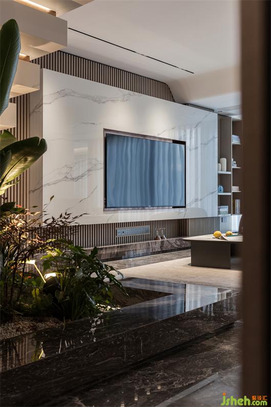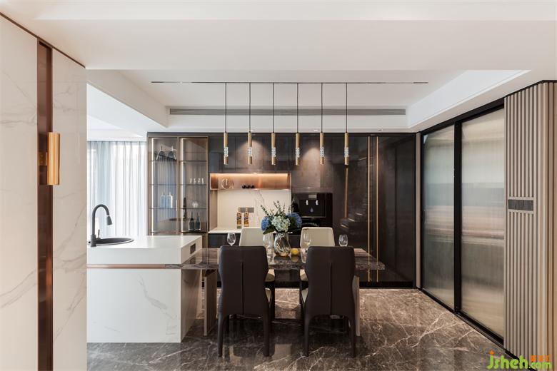 極具質(zhì)感的大理石,精致的金屬線條,高光木飾面板,皮革,絨布,巧妙的搭配,打造出一個(gè)舒適、簡(jiǎn)練、奢華、溫馨、明亮的居住空間。一樓主要作為休閑娛樂(lè)的區(qū)域,在設(shè)計(jì)上,我們更多的去打開空間,讓整個(gè)空間更具靈動(dòng)。對(duì)于復(fù)式樓來(lái)講,樓梯是設(shè)計(jì)的核心位置,通過(guò)對(duì)空間大膽的改造,合理的打造出精美的懸浮式樓梯。巖板作為當(dāng)下的主流,極致的質(zhì)感追求,盡顯他的與眾不同,在背景墻、樓梯、吧臺(tái)等位置巧妙的運(yùn)用,通過(guò)局部精致的金屬線條的合理搭配,共同打造空間質(zhì)感。 染色墻板的結(jié)合給空間增添了許多溫度,更有家的溫馨。地面采用了灰色大理石,自然的紋理給了更多想象的空間。局部奢石的點(diǎn)綴更給空間增加了奢華感。在于空間的設(shè)計(jì)當(dāng)中,簡(jiǎn)的存在主要體現(xiàn)在吊頂上面,在當(dāng)下的時(shí)代,生活節(jié)奏的加快,人們對(duì)于簡(jiǎn)的追求更加的強(qiáng)烈,在設(shè)計(jì)的過(guò)程中簡(jiǎn)與奢的結(jié)合,使得空間更具漲性。