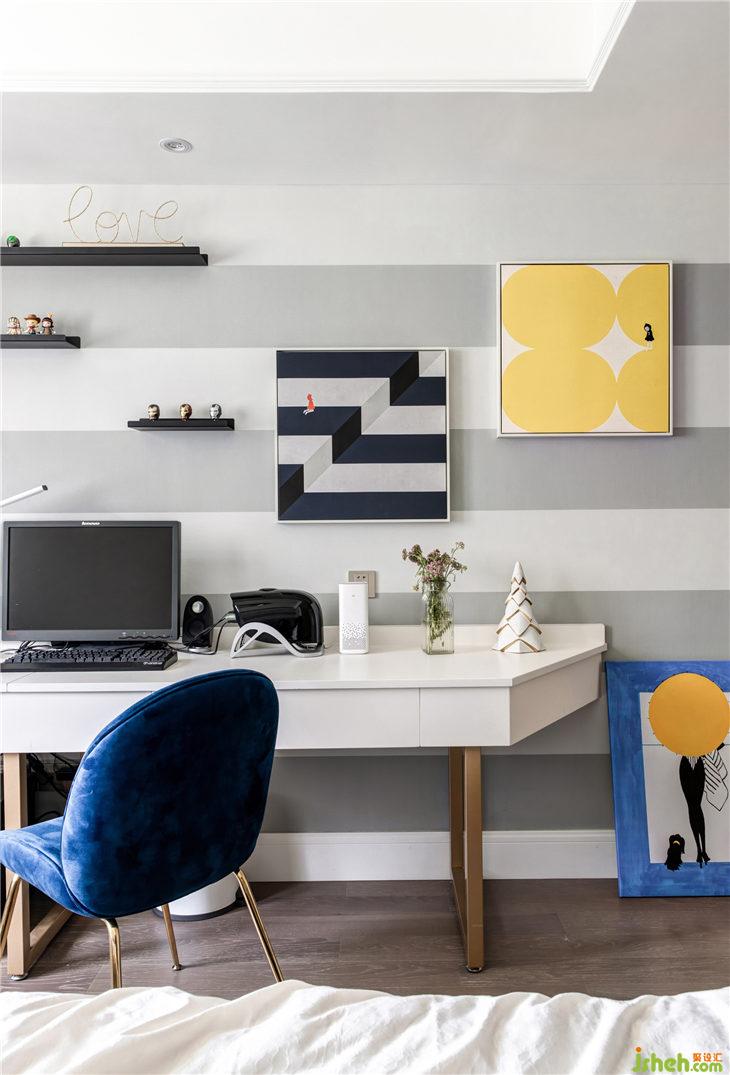 這里空間雖小,但一樣有著大大的儲(chǔ)藏空間,打開房門,是兩個(gè)整面的儲(chǔ)物柜,書桌也是很寬很長,防止桌角對(duì)外,會(huì)有一定的安全隱患和視覺壓抑,我們將桌角斜角處理。